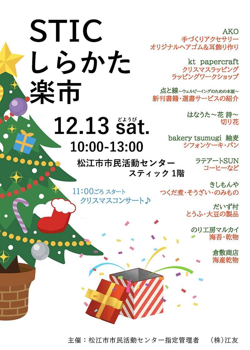 イベント出店のお知らせ『12月13日(土)STICしらかた楽市』